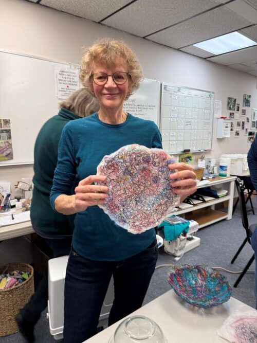 The Fiber Bowl class Saturday, January 17th was a huge success. Eight students joined our two instructors. It was a tons of fun. Everyone successfully made a coupled bowls before the end of the class.